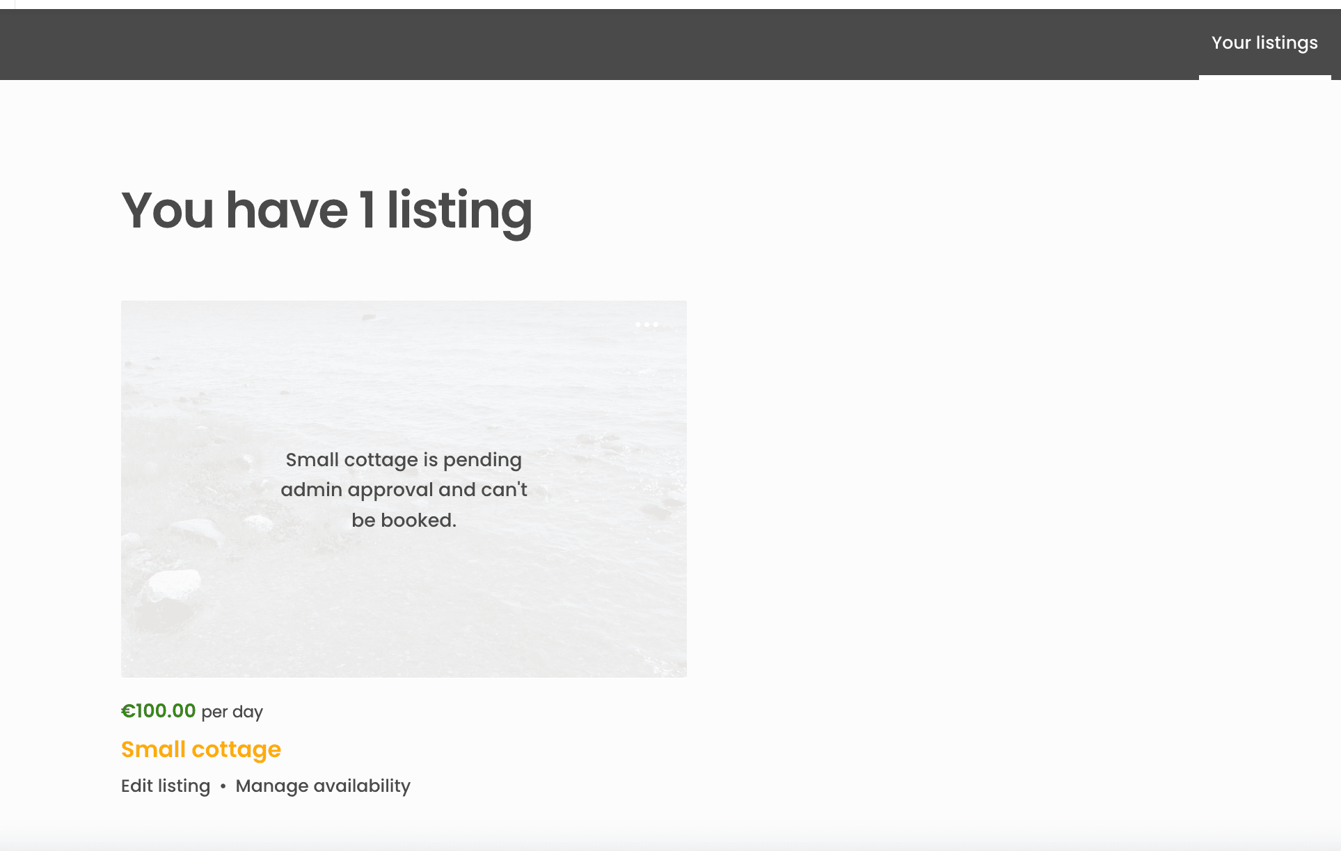 When the provider navigates to their Manage Listings page, listings pending approval are shown with an overlay indicating the listing's state.