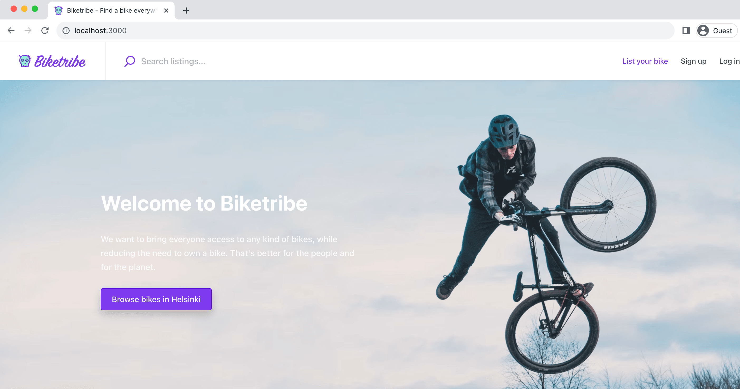 When you now go to the browser that is running your template in localhost:3000, you will also see that the branding corresponds to your Biketribe marketplace.